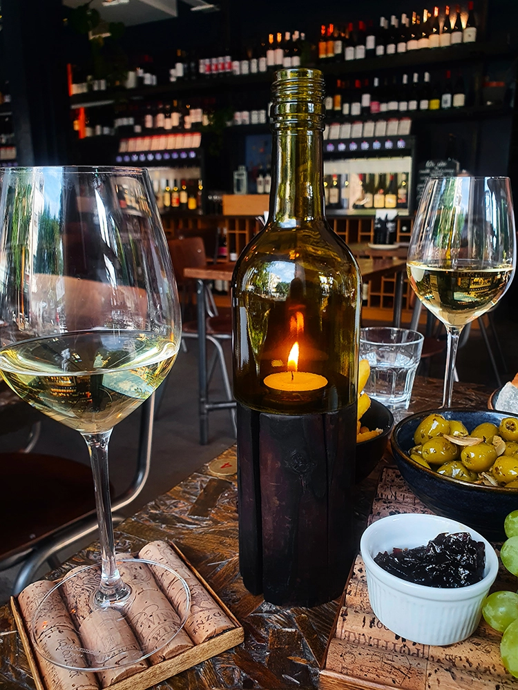 Smart solutions are always great topics of conversation. Our tealight holder wine bottle, with its ingenious design, is no different. The top half of the holder looks like a regular glass bottle. It is made of a recycled wine bottle cut in half. The bottom part of the item is made of carved wood. In this wooden base, you can place a tealight. Thanks to the slits in the wooden base, the tealight gets enough oxygen to burn and make your mealtime a delightful experience. If you decide to put out the light, simply put the cork in the bottle and watch the flame slowly fade away.